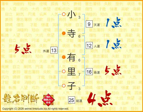 小寺有里子さんの総運は25画の4点!