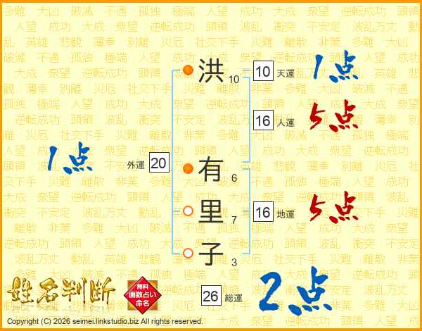 洪有里子さんの総運は26画の2点!