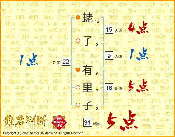 蛯子有里子さんの総運は31画の5点!
