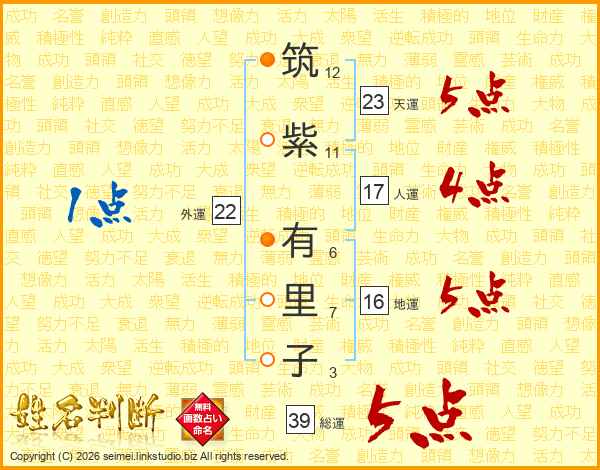 筑(12画)紫(11画) 有(6画)里(7画)子(3画)