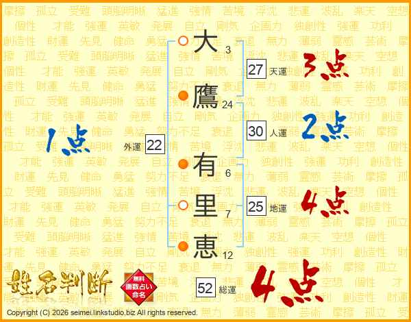 大鷹有里恵さんの総運は52画の4点!