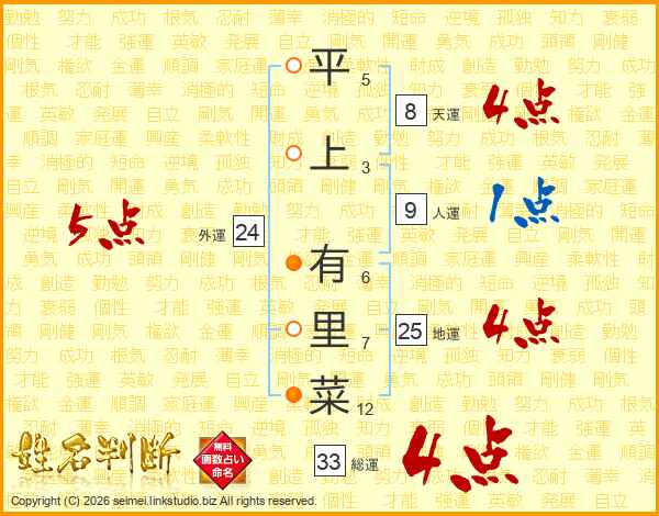 平上有里菜さんの外運は24画の5点!