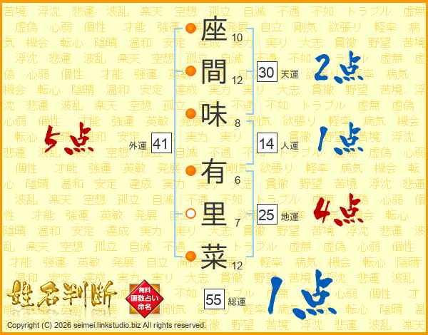 座間味有里菜さんの天運は30画の2点!