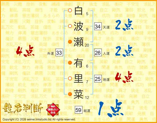 白波瀬有里菜さんの外運は33画の4点!
