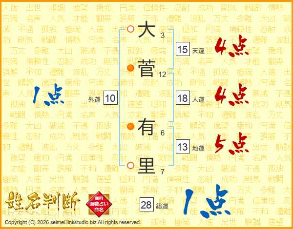 大菅有里さんの総運は28画の1点!