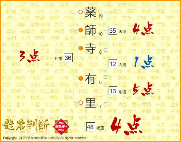 薬師寺有里さんの総運は48画の4点!