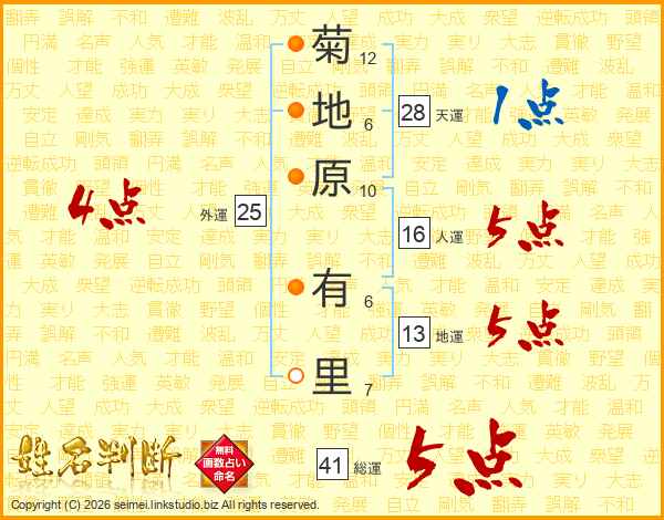 菊地原有里さんの総運は41画の5点!