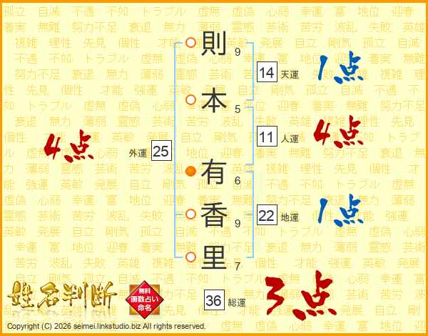 則本有香里さんの天運は14画の1点!