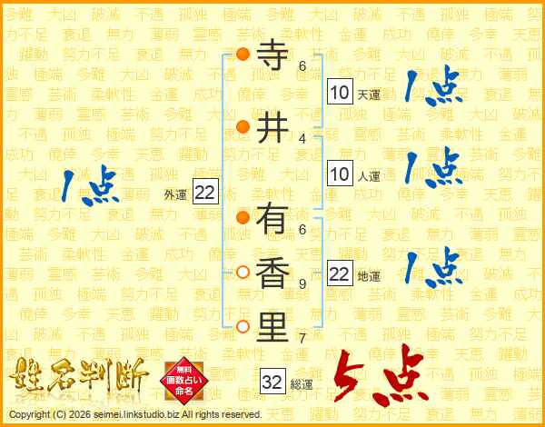 寺井有香里さんの総運は32画の5点!