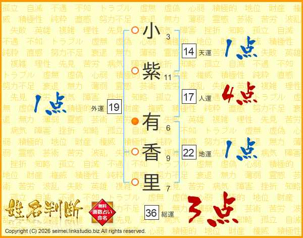 小(3画)紫(11画) 有(6画)香(9画)里(7画)
