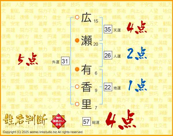 広瀬有香里さんの外運は31画の5点!