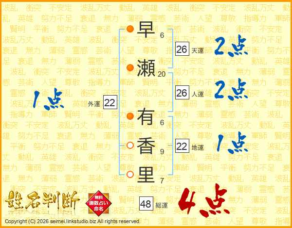 早瀬有香里さんの総運は48画の4点!