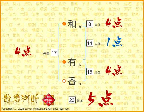 和有香さんの人運は14画の1点!
