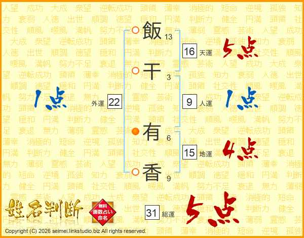 飯干有香さんの総運は31画の5点!