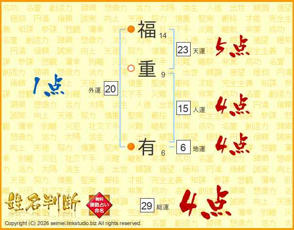 福重有さんの総運は29画の4点!