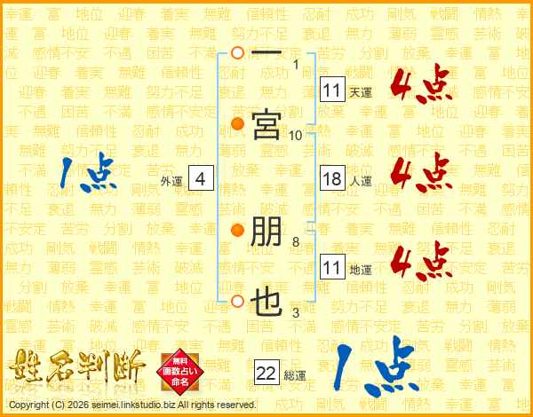 一宮朋也さんの天運は11画の4点!
