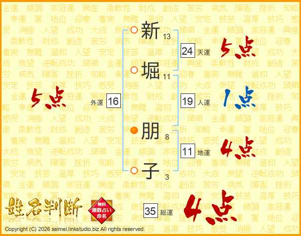 金運 順調 家庭運 興産 柔軟性 財成 創造