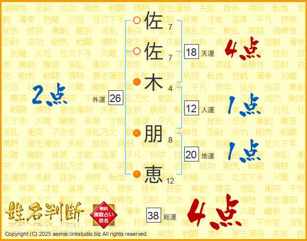佐(7画)佐(7画)木(4画) 朋(8画)恵(12画)
