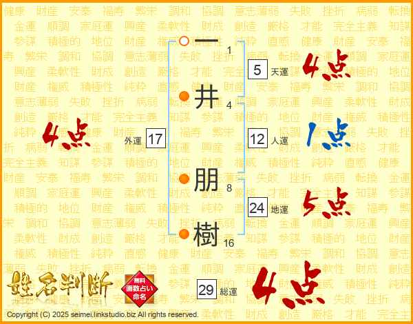 一(1画)井(4画) 朋(8画)樹(16画)