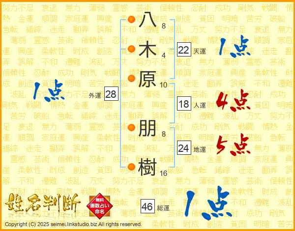八(8画)木(4画)原(10画) 朋(8画)樹(16画)
