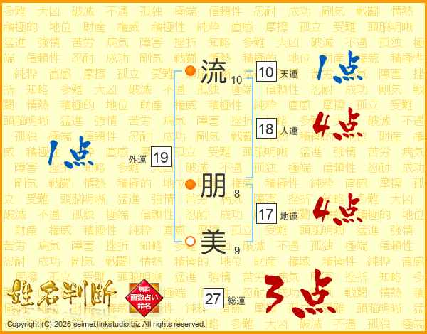 流(10画) 朋(8画)美(9画)