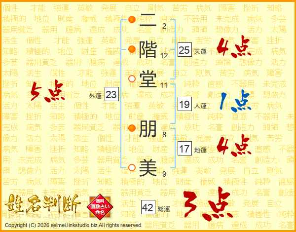 二階堂朋美さんの天運は25画の4点!