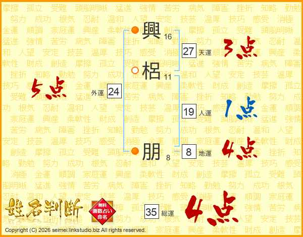 興(16画)梠(11画) 朋(8画)