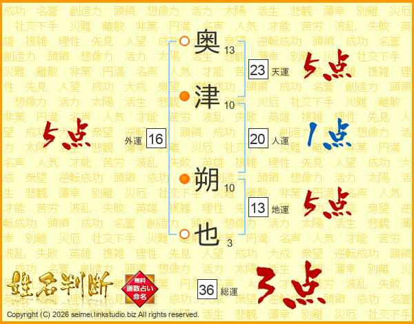 奥津朔也さんの総運は36画の3点!