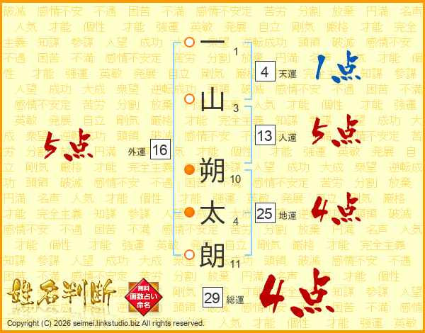 一山朔太朗さんの総運は29画の4点!