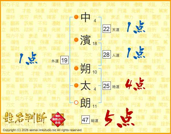 中濱朔太朗さんの総運は47画の5点!