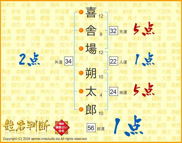 喜舎場朔太郎さんの総運は56画の1点!
