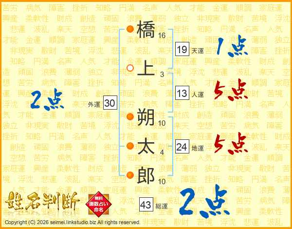 橋上朔太郎さんの総運は43画の2点!