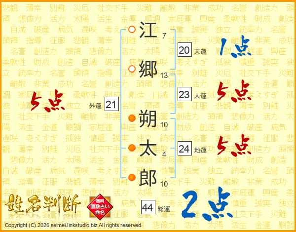 江郷朔太郎さんの総運は44画の2点!