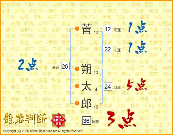 菅朔太郎さんの総運は36画の3点!