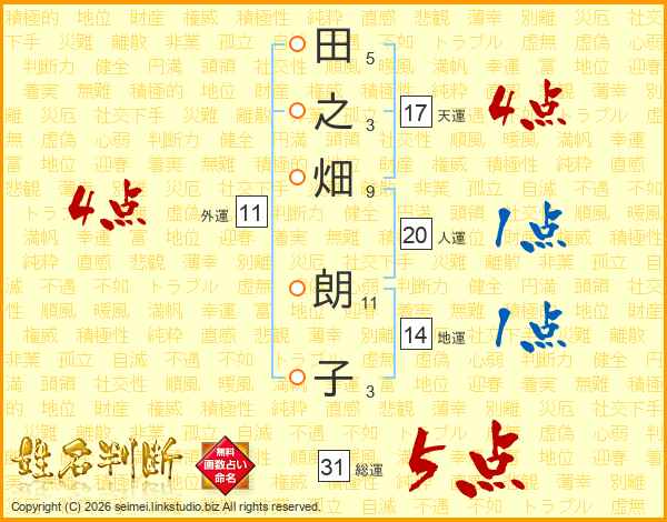 田之畑朗子さんの総運は31画の5点!