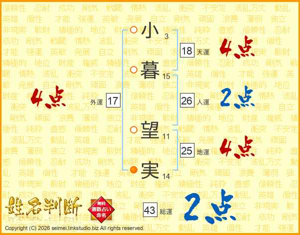 小暮望実さんの天運は18画の4点!