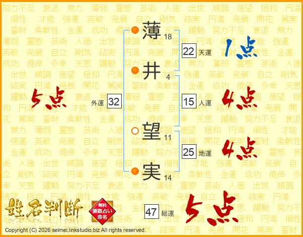 薄井望実さんの総運は47画の5点!