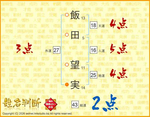 飯田望実さんの天運は18画の4点!