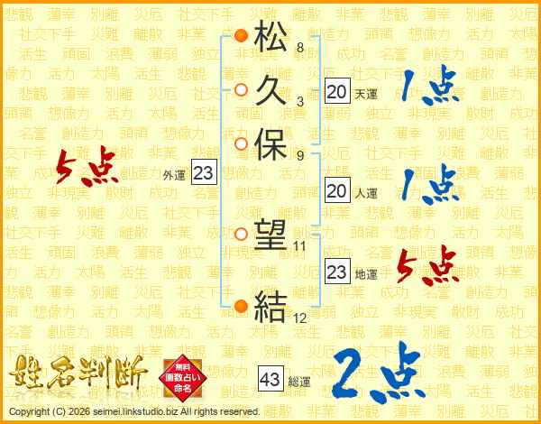 松(8画)久(3画)保(9画) 望(11画)結(12画)