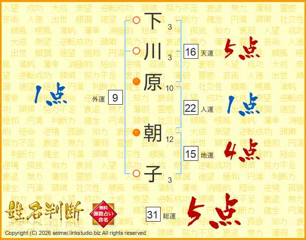 下川原朝子さんの総運は31画の5点!