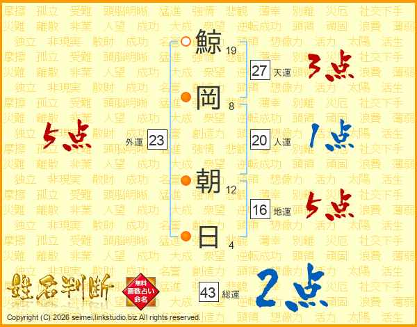 鯨岡朝日さんの天運は27画の3点!