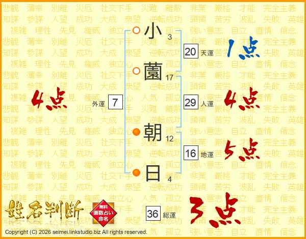 小薗朝日さんの総運は36画の3点!