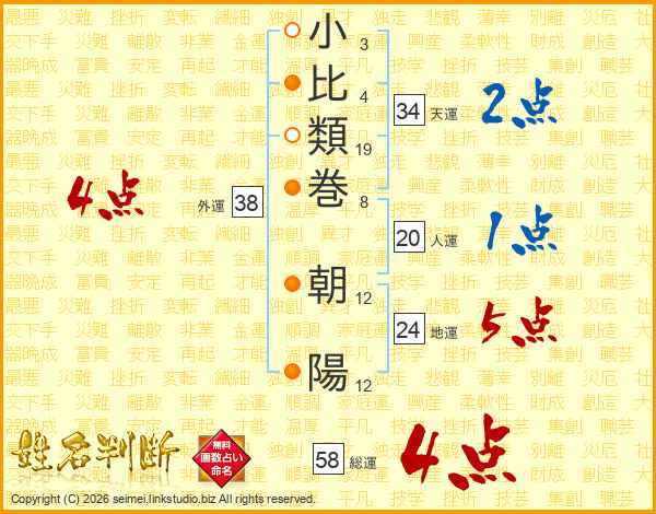 小(3画)比(4画)類(19画)巻(8画) 朝(12画)陽(12画)