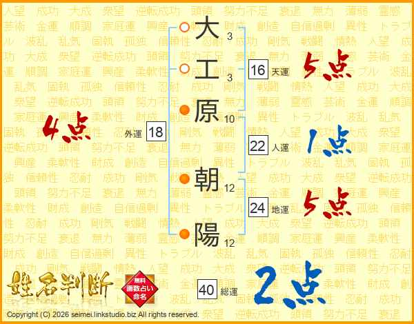 大工原朝陽さんの総運は40画の2点!