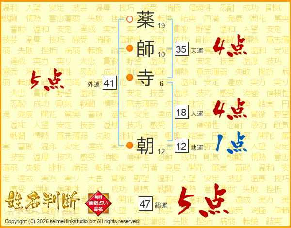 薬師寺朝さんの総運は47画の5点!