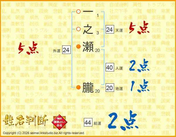 一(1画)之(3画)瀬(20画) 朧(20画)