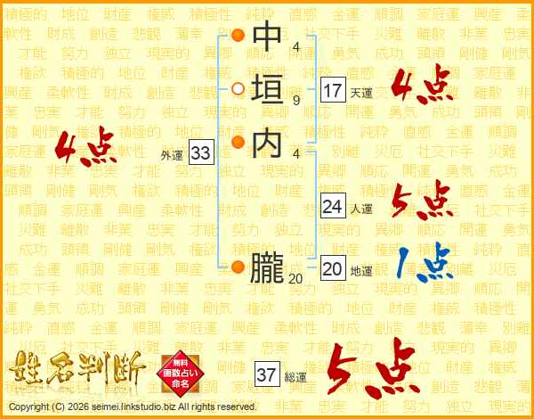 中垣内朧さんの総運は37画の5点!