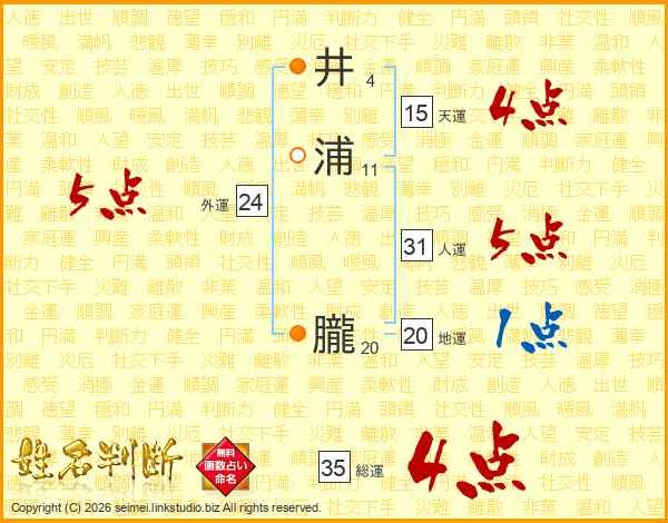 井浦朧さんの総運は35画の4点!