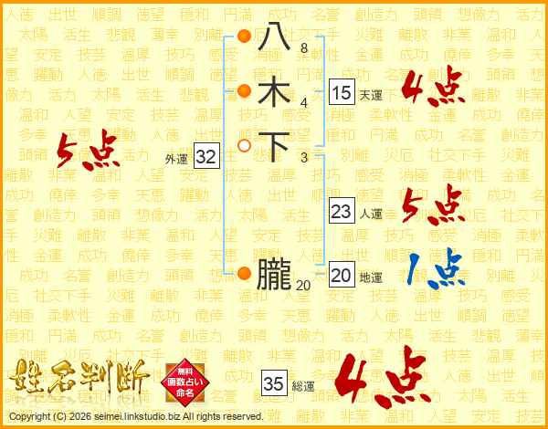 八木下朧さんの総運は35画の4点!