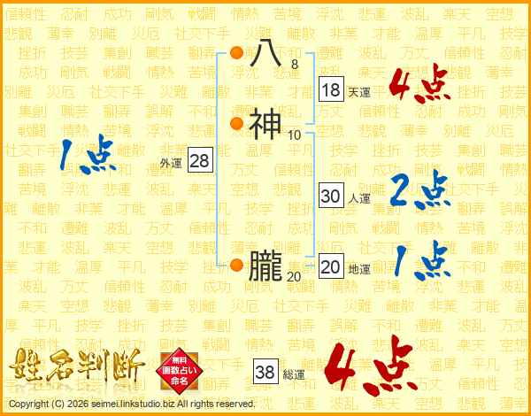 八神朧さんの総運は38画の4点!